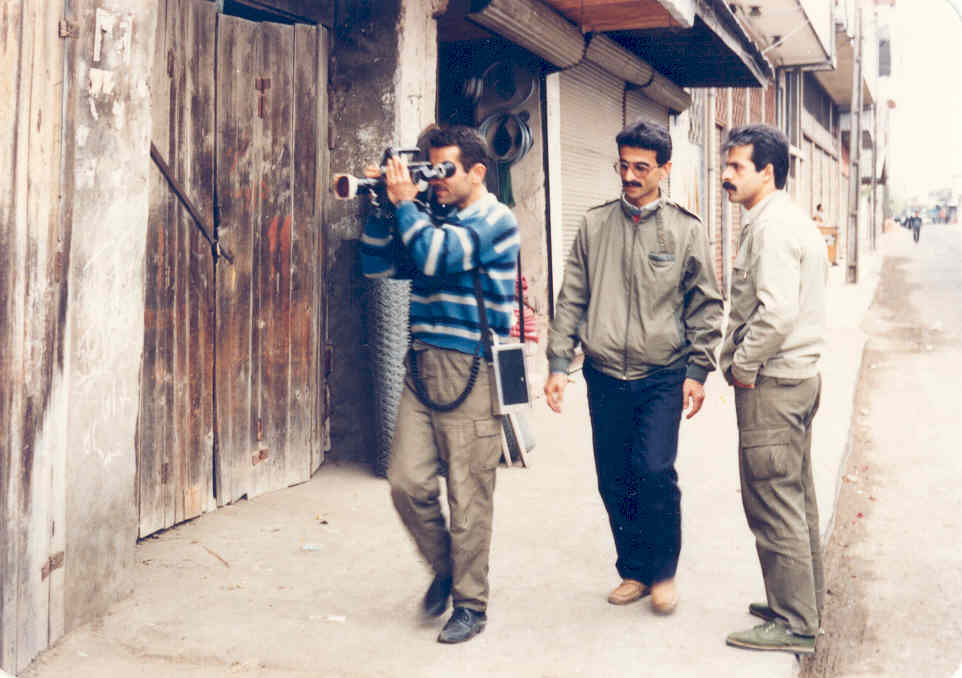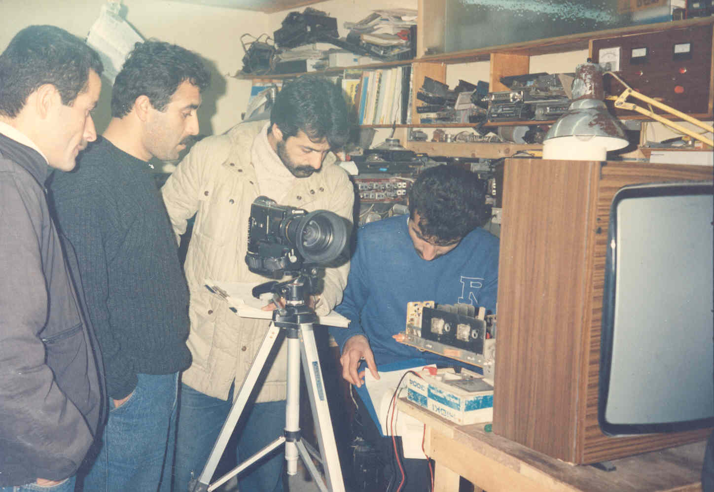 09- ارتباط – داستانی – 20 دقیقه – 8 میلیمتری – 1365- کانون فیلم بندرانزلی – به ترتیب از چپ : امیرپوراکبری ( دستیار فیلمبردار)- اصغرنازرفتار(فیلمبردار) – حسن بهرام زاده ( کارگردان ) – علیرضا غاروریانی ( دستیار کارگردان)- لوکیشن : مغازه تعمیر لوازم الکترونیک – بندرانزلی